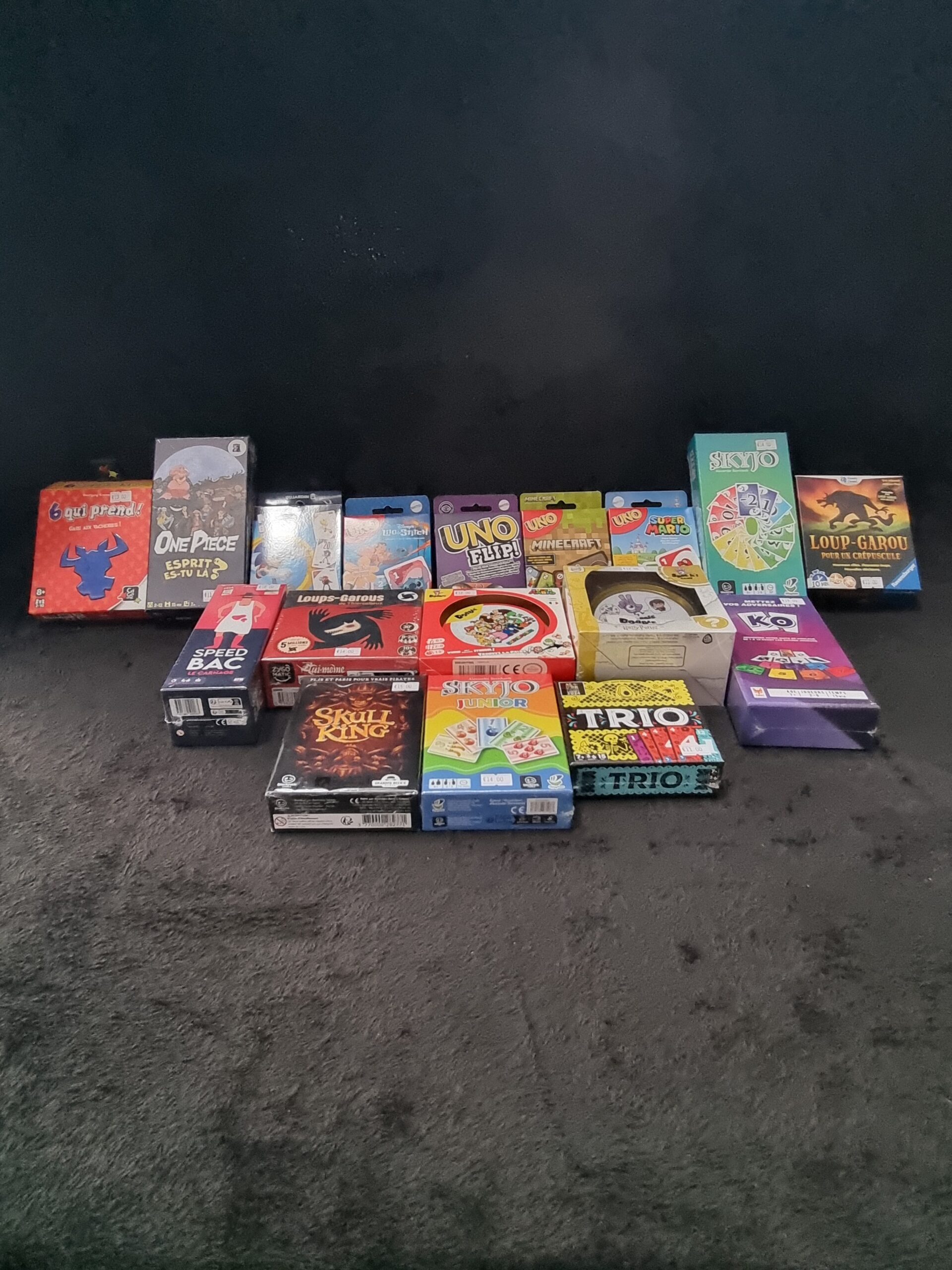 Également des figures, peluches et d’autres jeux de cartes : loups Garous, Uno, mille bornes, Double, Skyjo etc..